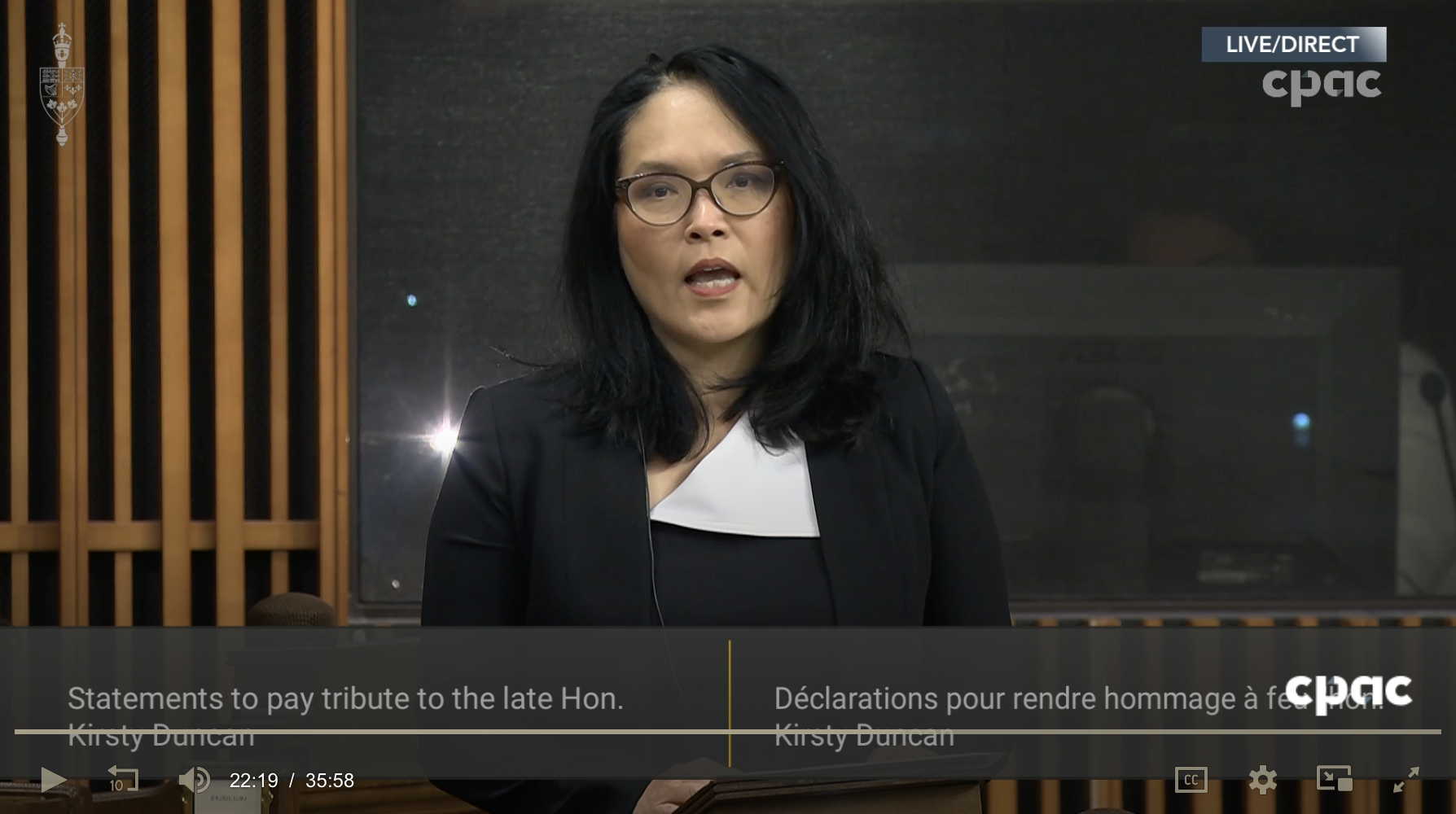 Click image or link to watch the CPAC video, Jenny's speech starts at 21:44 - https://www.cpac.ca/house-of-commons-proceedings/episode/tributes-to-the-late-kirsty-duncan--february-6-2026?id=d0dbaf6f-e643-4e63-9f88-6ddc540ff2bb