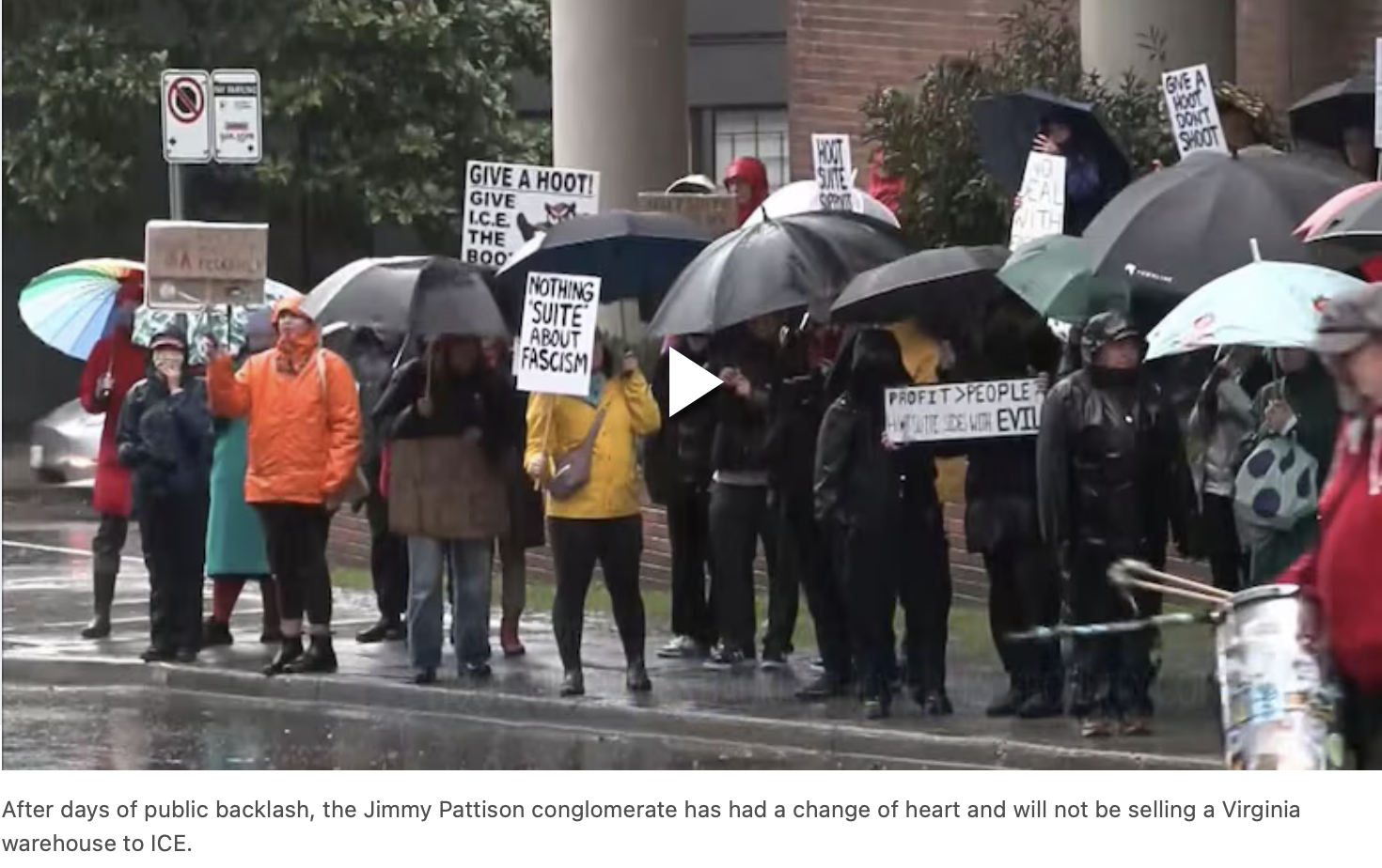 After days of public backlash, Jim Pattison Developments called off the planned sale of a Virginia warehouse for use by U.S. Immigration and Customs Enforcement on Friday—as the company was facing a protest alongside Canadian tech company Hootsuite.