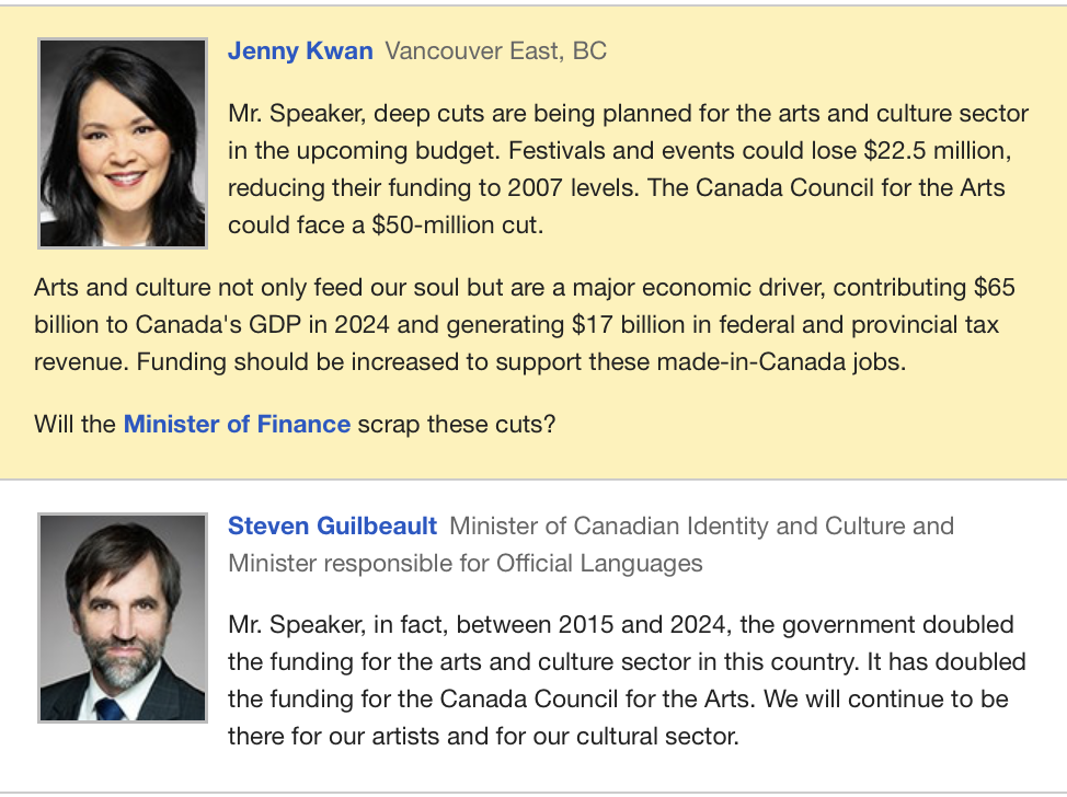 Arts and culture not only feed our soul but are a major economic driver, contributing $65 billion to Canada's GDP in 2024 and generating $17 billion in federal and provincial tax revenue. Funding should be increased to support these made-in-Canada jobs.