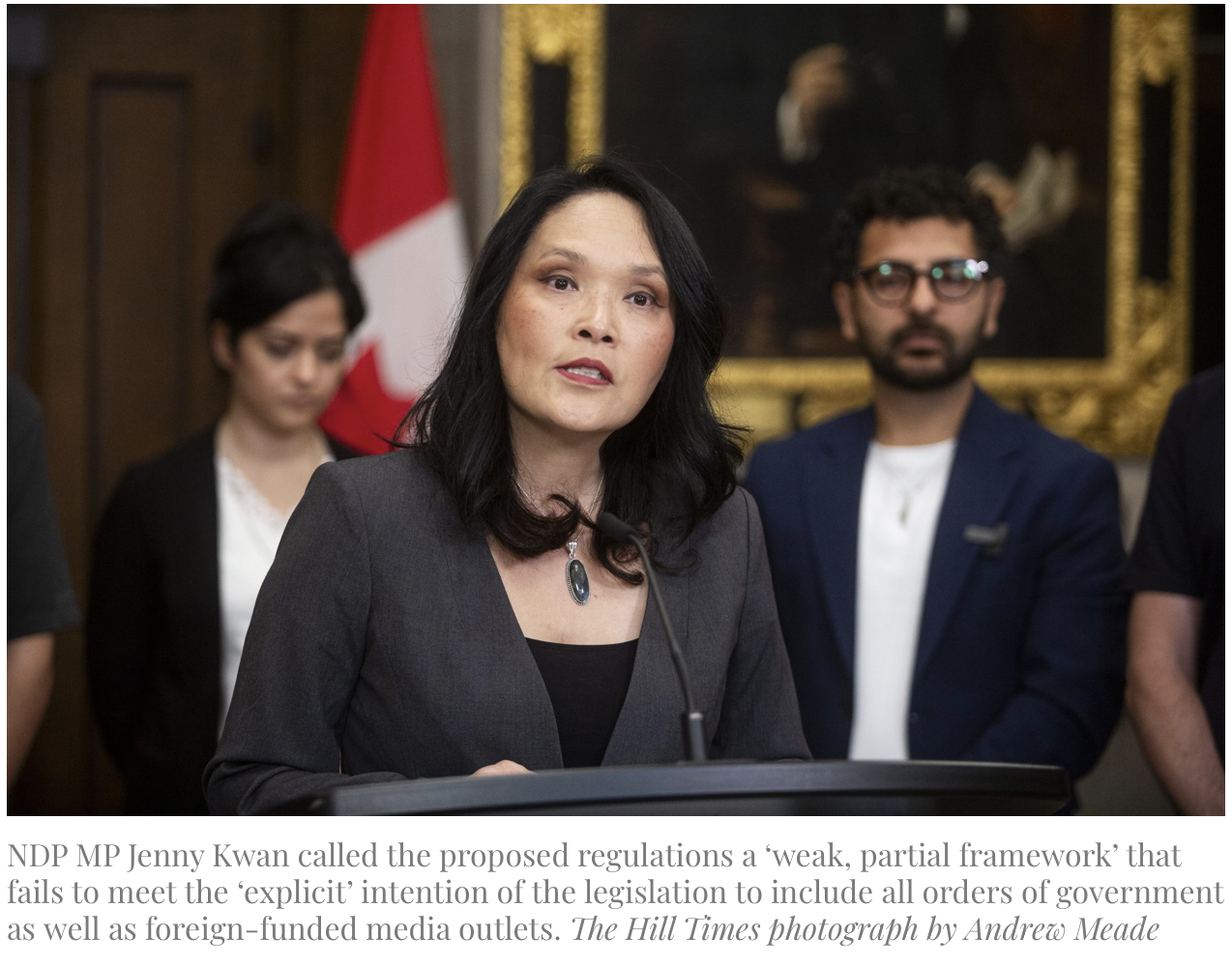 Kwan, her party’s public safety and national security critic, accused Prime Minister Mark Carney (Nepean, Ont.) of “dragging his feet” on the implementation of the long-awaited Foreign Influence Transparency and Accountability Act (FITAA), Bill C-70, despite its expedited passage with the support of every opposition party in June 2024.